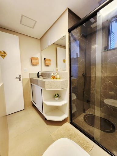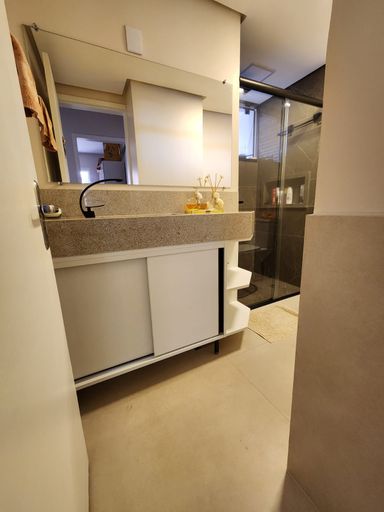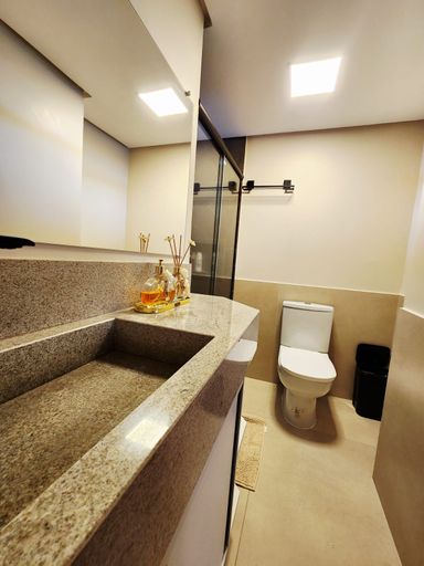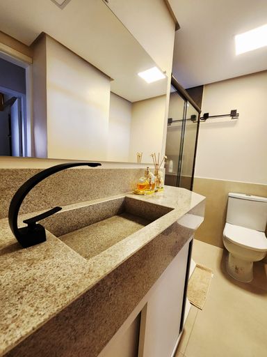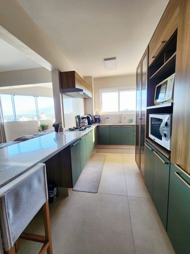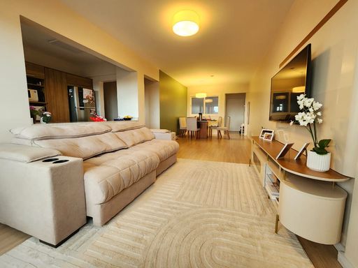 O apartamento está semimobiliado, com móveis planejados de excelente qualidade e acabamentos em piso laminado e porcelanato, garantindo sofisticação em cada detalhe.